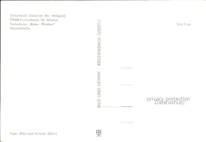 72080169 Zinnowitz Ostseebad Usedom Wandelhalle FDGB Feriendienst IG Wismut Ferienheim Roter Oktober postalisch nicht gelaufen Erhaltung siehe scans KatCode: 11110013059107