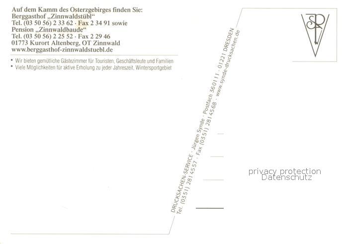 73660053 Zinnwald-Georgenfeld Berggasthof Pension Zinnwaldstuebl Pferdeschlitten postalisch nicht gelaufen Erhaltung siehe scans [FriedD77] KatCode: 11110014290010