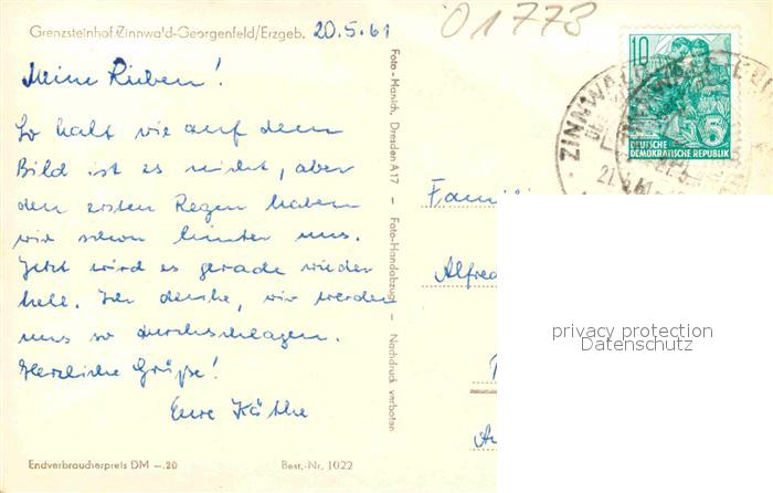 72641912 alte Postkarte Zinnwald-Georgenfeld Grenzsteinhof postalisch gelaufen Erhaltung siehe scans [AndreD76] KatCode: 11110014290010