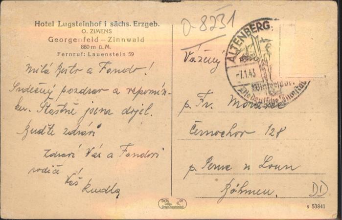 40970516 Zinnwald-Georgenfeld Hotel Lugsteinhof Fremdenzimmer KatCode 11110014290010