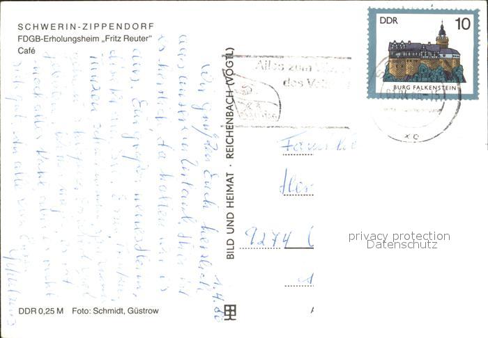 72008359 alte Postkarte Zippendorf FDGB Erholungsheim Frit Reuter Cafe postalisch gelaufen Erhaltung siehe scans KatCode: 11110013004000