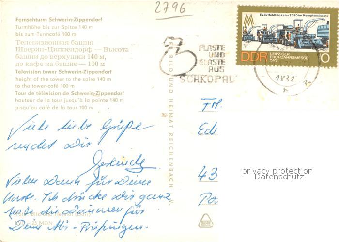 73759331 alte Postkarte Zippendorf Fernsehturm Turmcafe Details postalisch gelaufen Erhaltung siehe scans [FriedD77] KatCode: 11110013004000