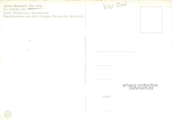 74104567 Zirl Oberinntal Tirol AT Zirler Weinhof Hotel Restaurant postalisch nicht gelaufen Erhaltung siehe scans [WerneD78] KatCode: 11390332070369