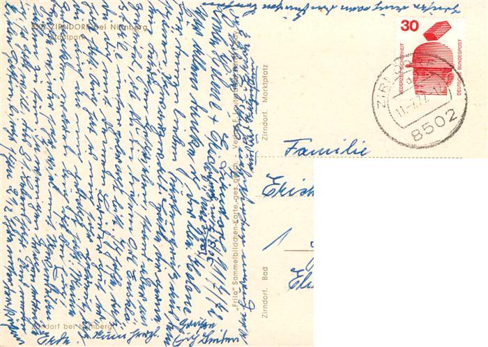 73901905 alte Postkarte Zirndorf Mittelfranken Stadtpark Stadtzentrum Altstadt Freibad postalisch gelaufen Erhaltung siehe scans [FriedD77] KatCode: 11110009573134