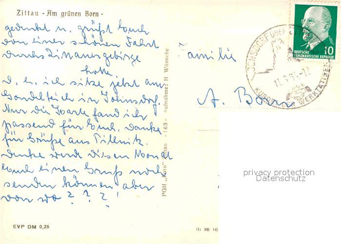 72704893 alte Postkarte Zittau Am Gruenen Born postalisch gelaufen Erhaltung siehe scans [AndreD76] KatCode: 11110014286470