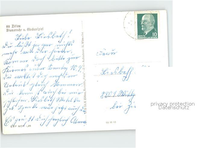 72037170 alte Postkarte Zittau Blumenuhr Glockenspiel postalisch gelaufen Erhaltung siehe scans KatCode: 11110014286470