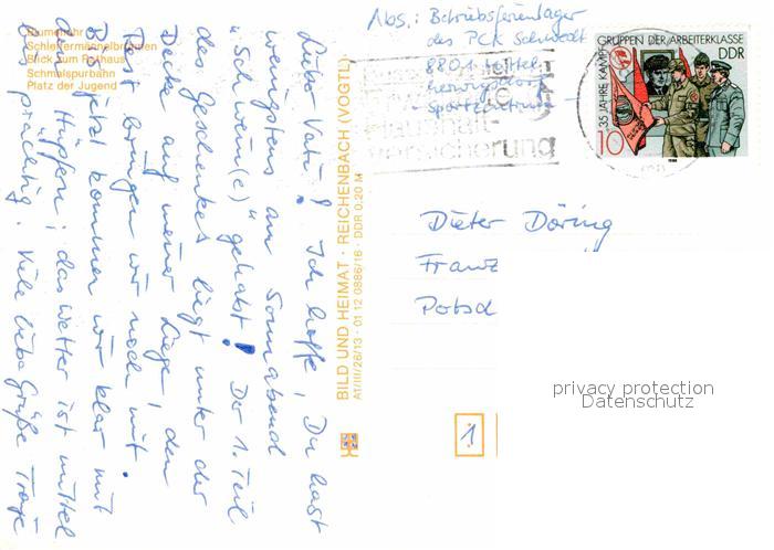 72884642 alte Postkarte Zittau Blumenuhr Schleifermaennelbrunnen Rathaus Schmalspurbahn Platz der Jugend postalisch gelaufen Erhaltung siehe scans [WerneD78] KatCode: 11110014286470