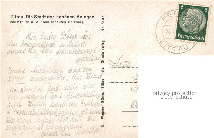 73570984 alte Postkarte Zittau Blumenuhr und Stadtgaertnerei postalisch gelaufen Erhaltung siehe scans [WerneD78] KatCode: 11110014286470