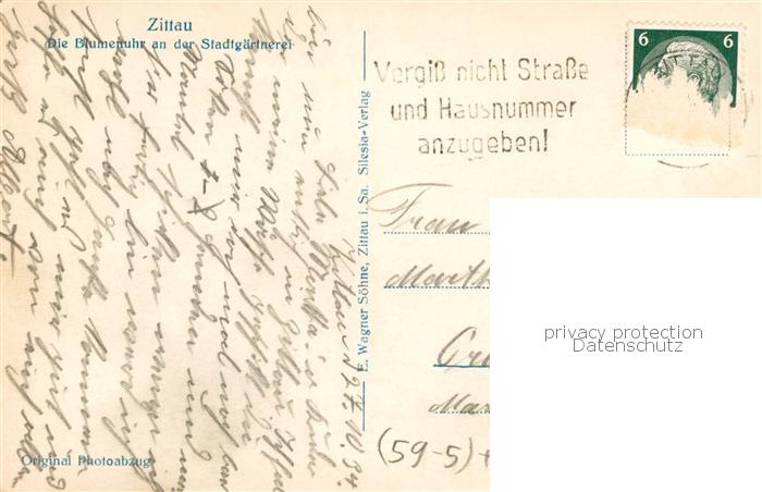 73800648 alte Postkarte Zittau Blumenuhr postalisch gelaufen Erhaltung siehe scans [FriedD77] KatCode: 11110014286470