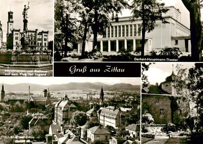 Zittau Brunnen Rathaus Platz der Jugend Gerhart-Hauptmann-Theater Stadtpanorama