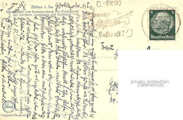 73697825 alte Postkarte Zittau Gesamtbild vom Kummersberg Jeschken postalisch gelaufen Erhaltung siehe scans [LiesaD40] KatCode: 11110014286470
