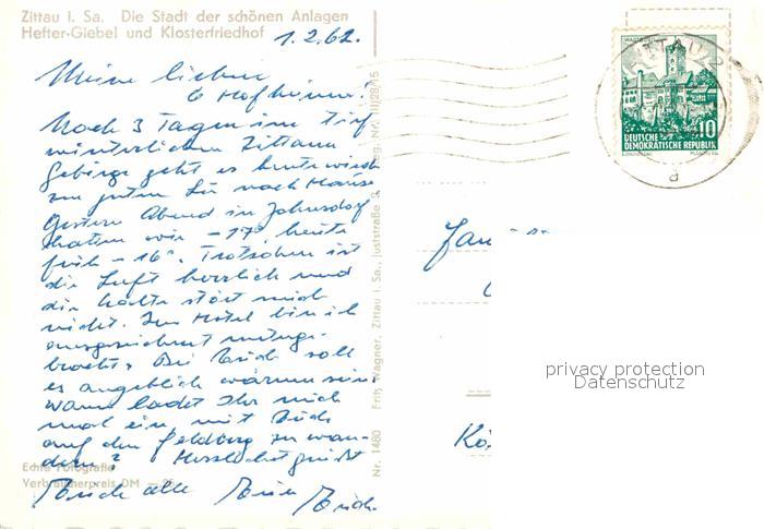 72796491 alte Postkarte Zittau Hefter Giebel Klosterfriedhof postalisch gelaufen Erhaltung siehe scans [LiesaD40] KatCode: 11110014286470