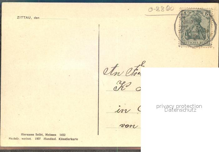42364152 alte Postkarte Zittau Marktplatz handkolorierte Kuenstlerkarte postalisch gelaufen Erhaltung siehe scans KatCode: 11110014286470