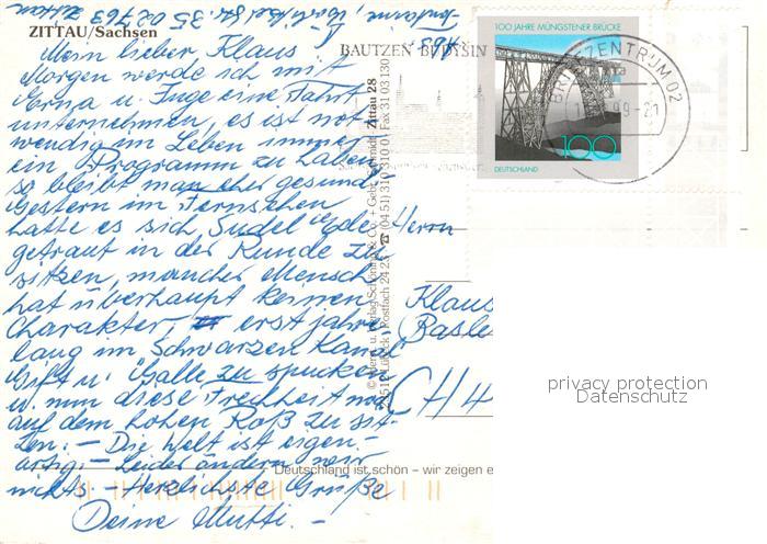73300543 alte Postkarte Zittau Marktplatz Mandau Bruecke Fleischerbastei Herkulesbrunnen Rathaus Toepferberg Weberkirche Fachwerkhaus postalisch gelaufen Erhaltung siehe scans [FriedD77] KatCode: 11110014286470