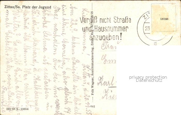 72034202 alte Postkarte Zittau Platz der Jugend postalisch gelaufen Erhaltung siehe scans KatCode: 11110014286470