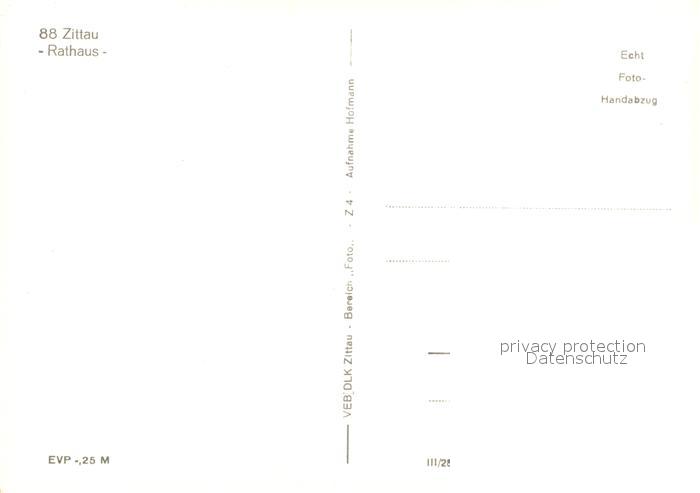 73133643 Zittau Rathaus Junge Dame vor Brunnen Handabzug postalisch nicht gelaufen Erhaltung siehe scans [FriedD77] KatCode: 11110014286470