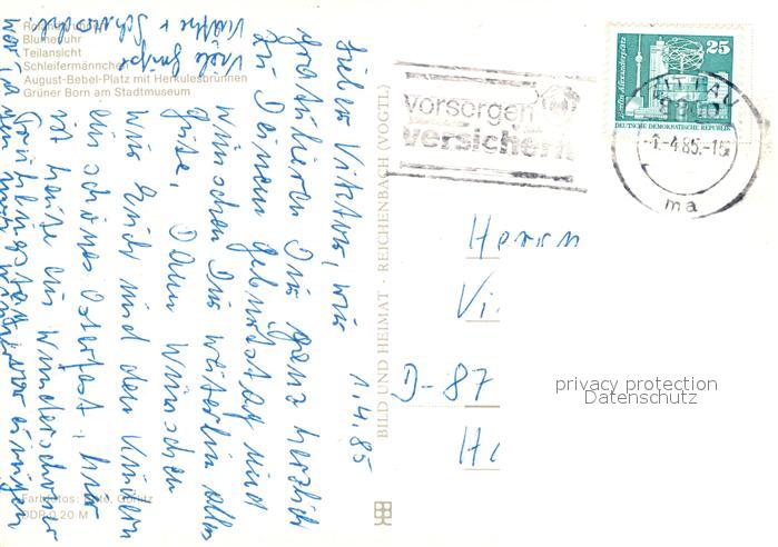 73305289 alte Postkarte Zittau Rolandbrunnen Blumenuhr Teilansicht Schleifermaennchen August Bebel Platz Herkulesbrunnen Gruener Born Stadtmuseum postalisch gelaufen Erhaltung siehe scans [FriedD77] KatCode: 11110014286470