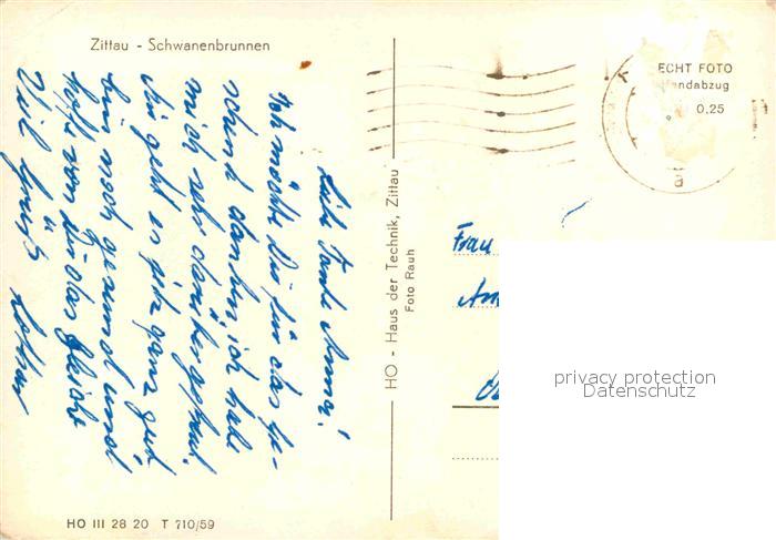 72728510 alte Postkarte Zittau Schwanenbrunnen postalisch gelaufen Erhaltung siehe scans [FriedD77] KatCode: 11110014286470
