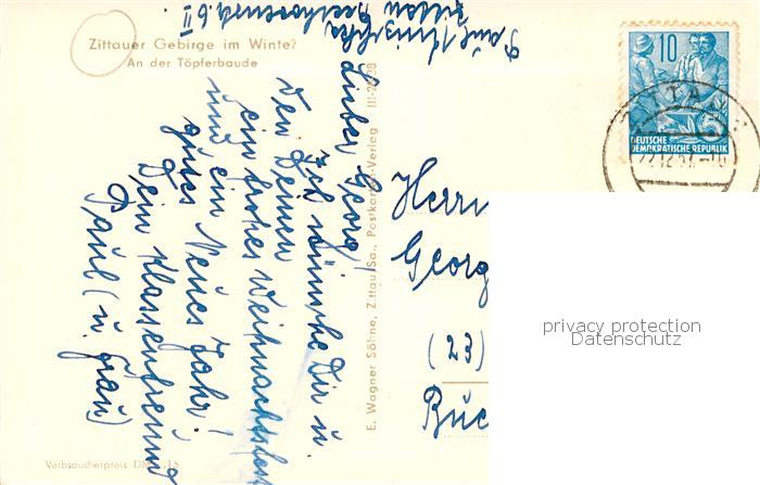73796904 alte Postkarte Zittau Toepferbaude im Zittauer Gebirge im Winter Weihnachtskarte postalisch gelaufen Erhaltung siehe scans [FriedD77] KatCode: 11110014286470