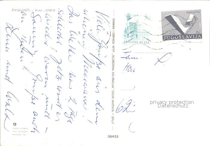 old postcard Zivogosce Hotel Nimfa postalisch gelaufen Erhaltung siehe scans