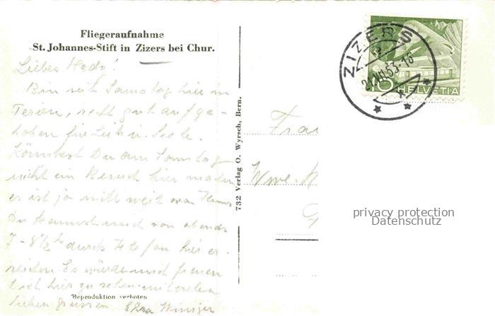 34145255 alte Postkarte Zizers Landquart GR St. Johannes-Stift postalisch gelaufen Fliegeraufnahme Erhaltung siehe scans [FriedD77] KatCode: 11470100330206