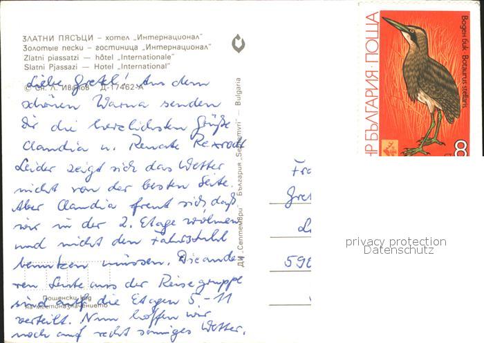 Zlatni Piassatzi Hotel International postalisch nicht gelaufen Erhaltung siehe scans