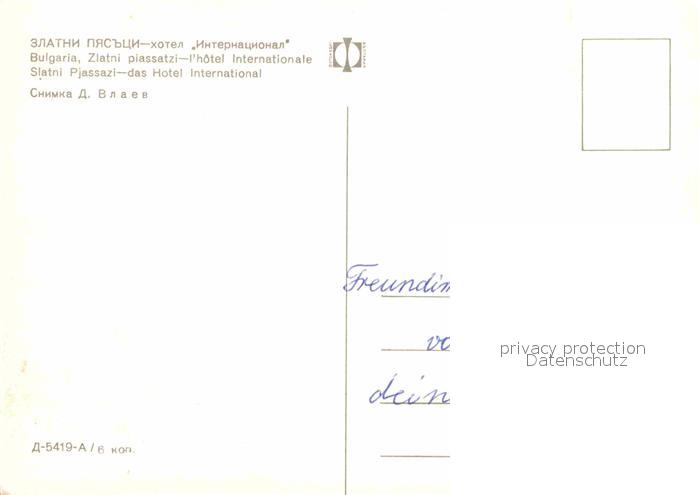 Zlatni Piassatzi Hotel International postalisch nicht gelaufen Erhaltung siehe scans [FriedD77]