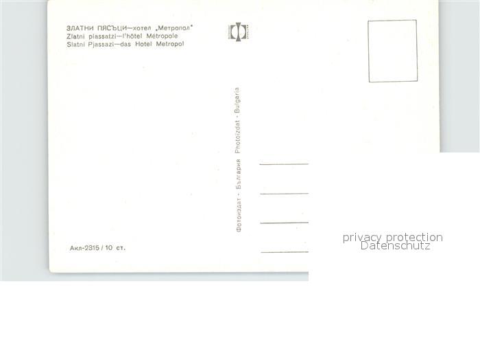 Zlatni Piassatzi Hotel Metropol postalisch nicht gelaufen Erhaltung siehe scans