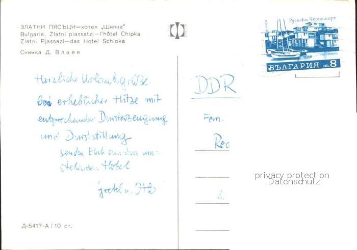 old postcard Zlatni Piassatzi Hotel Schipka postalisch gelaufen Erhaltung siehe scans