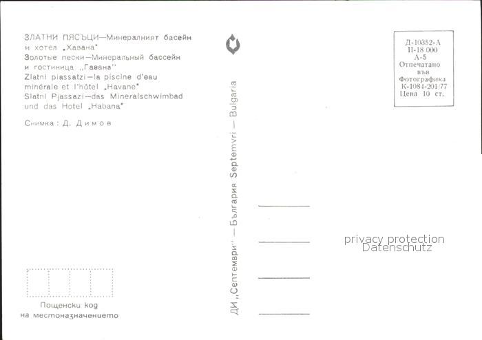 Zlatni Piassatzi Mineralschwimmbad Hotel Habana postalisch nicht gelaufen Erhaltung siehe scans