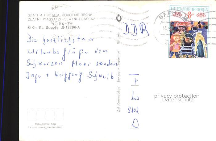 old postcard Zlatni Piassatzi Panorama Strand Kueste postalisch gelaufen Erhaltung siehe scans