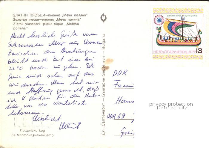 old postcard Zlatni Piassatzi Pique nique Metcha poliana postalisch gelaufen Erhaltung siehe scans [WerneD78 kt117box]
