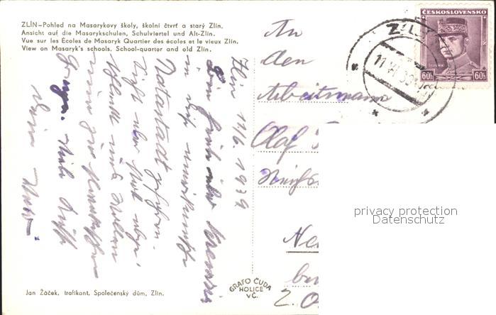 31739976 old postcard Zlin Ansicht auf die Masarykschulen Schulviertel und Alt-Zlin postalisch gelaufen Erhaltung siehe scans KatCode: 11520