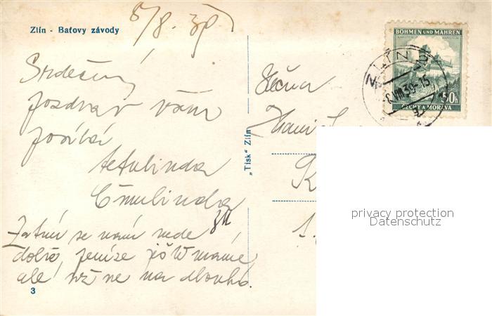 old postcard Zlin Neubausiedlung postalisch gelaufen Erhaltung siehe scans [KathaD81]
