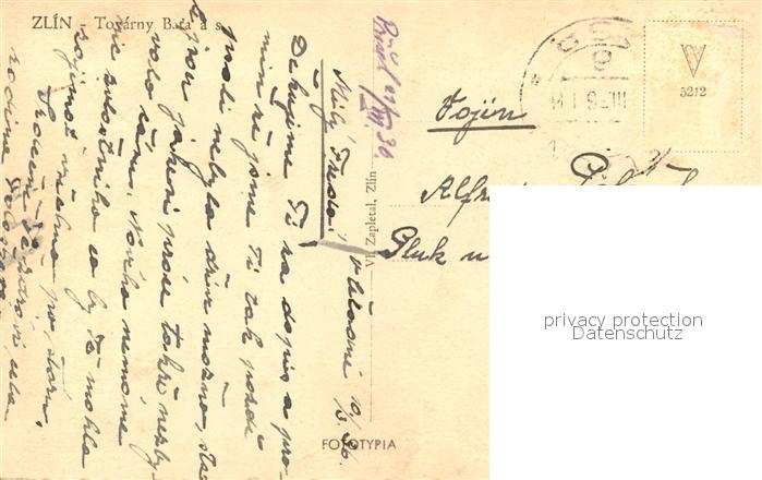 old postcard Zlin Panorama Automobilwerk postalisch gelaufen Erhaltung siehe scans [KathaD81]