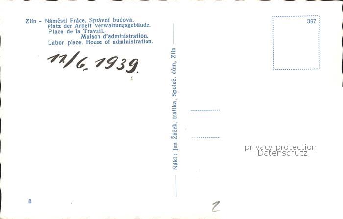 31739975 Zlin Platz der Arbeit Verwaltungsgebaeude postalisch nicht gelaufen Erhaltung siehe scans KatCode: 11520