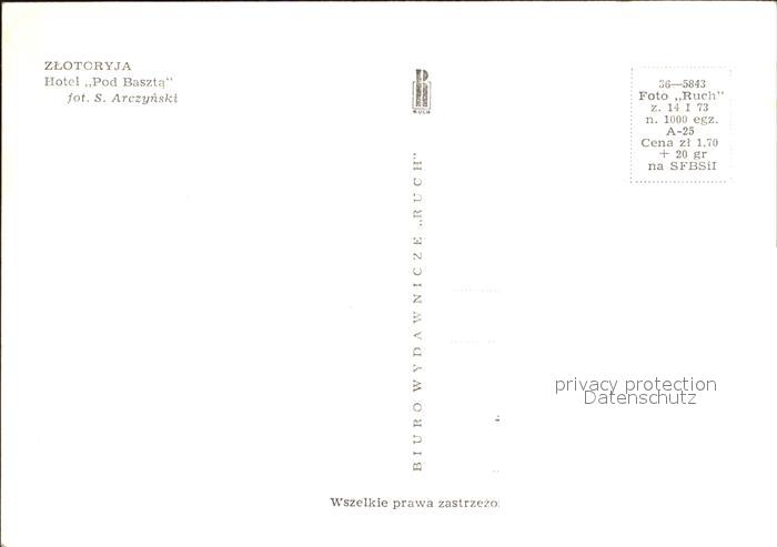12509081 Zlotoryja Hotel Pod Baszta postalisch nicht gelaufen Erhaltung siehe scans KatCode: 11410