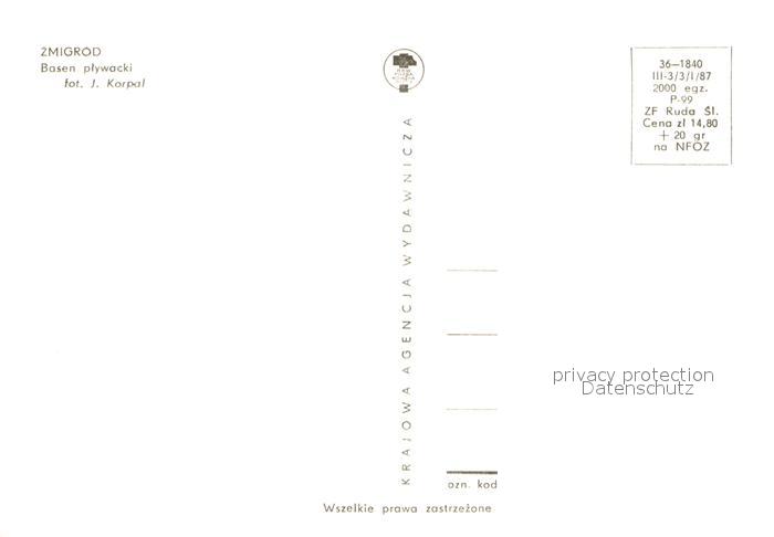 13624022 Zmigrod Basen plywacki postalisch nicht gelaufen Erhaltung siehe scans [PaolaD17] KatCode: 11410