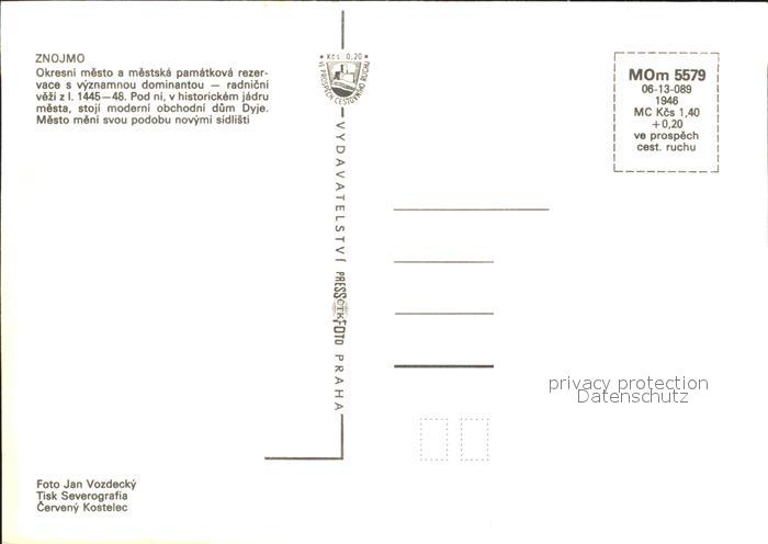 Znojmo Okresni mesto radnicni vezi Pod ni stoji moderni dum Dyje Mesto meni svou podobu novymi sidlisti postalisch nicht gelaufen Erhaltung siehe scans
