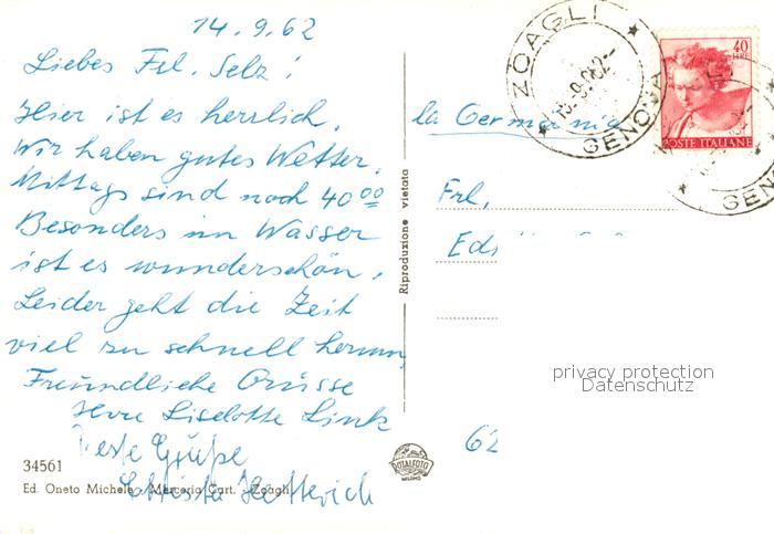 old postcard Zoagli Strandpartie postalisch gelaufen Erhaltung siehe scans [WerneD78]