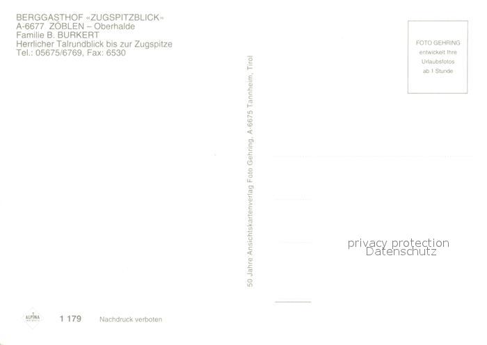 12934936 Zoeblen Berggasthaus Zugspitzblick postalisch nicht gelaufen Erhaltung siehe scans [AndreD76] KatCode: 11390331070837
