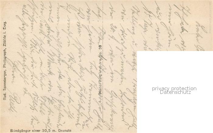 33677158 Zoeblitz Sachsen Militaria WK1 Granate postalisch nicht gelaufen Erhaltung siehe scans [Chrisger] KatCode: 11110014181410