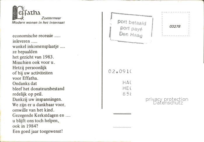 Zoetermeer Effatha Internat postalisch nicht gelaufen Erhaltung siehe scans