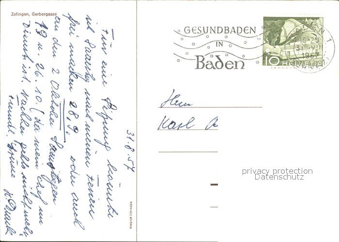 11627727 alte Postkarte Zofingen Gerbergasse postalisch gelaufen Erhaltung siehe scans KatCode: 11470010050472