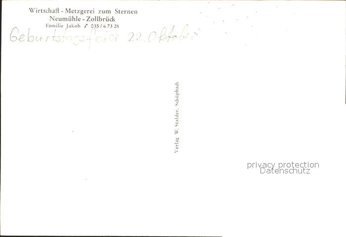 11640071 Zollbrueck Neumuehle Wirtschaft Metzgerei zum Sternen postalisch nicht gelaufen Erhaltung siehe scans Alte Ansichtskarte Postkarte Paol Katcode 11470060235724