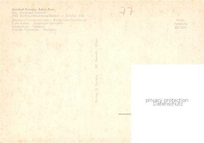 73862331 Zollhaus Blumberg BW Gasthof Pension Adler Post postalisch nicht gelaufen Erhaltung siehe scans [FriedD77] KatCode: 11110008326005
