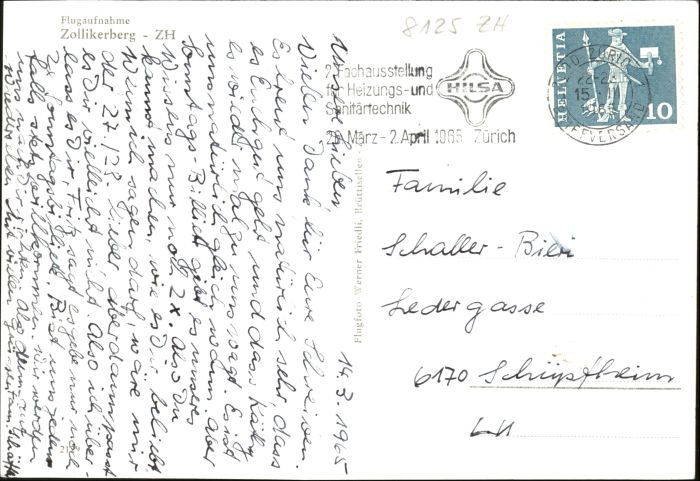 10724410 alte Postkarte Zollikerberg Fliegeraufnahme postalisch gelaufen KatCode: 11470260895380