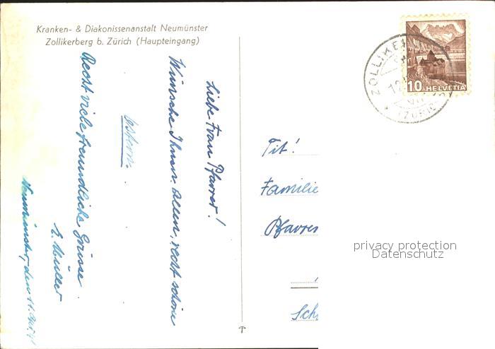 11837103 alte Postkarte Zollikerberg Kranken- Diakonissenanstalt Neumuenster Haupteingang postalisch gelaufen Erhaltung siehe scans KatCode: 11470260895380