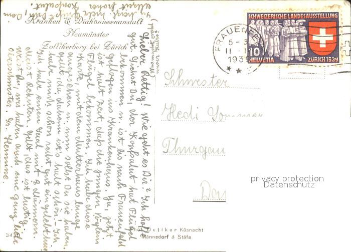 11650630 alte Postkarte Zollikerberg Kranken und Diakonissenanstalt Neumuenster postalisch gelaufen Erhaltung siehe scans KatCode: 11470260895380