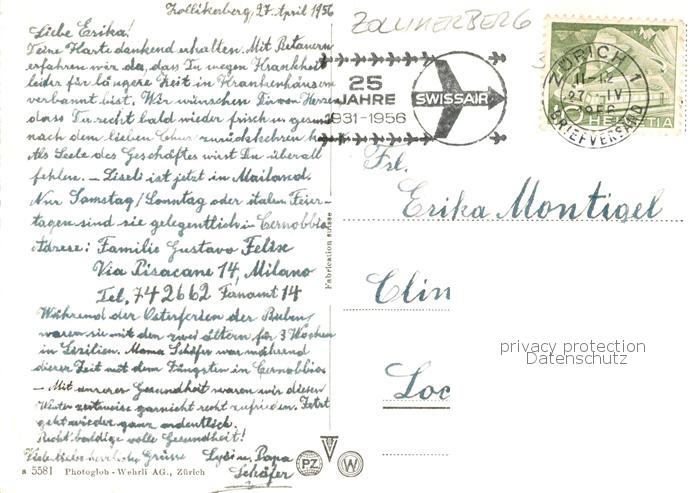 13792085 alte Postkarte Zollikerberg ZH Gesamtansicht m. Alpen-Panorama postalisch gelaufen Erhaltung siehe scans [LiesaD40] KatCode: 11470260895380